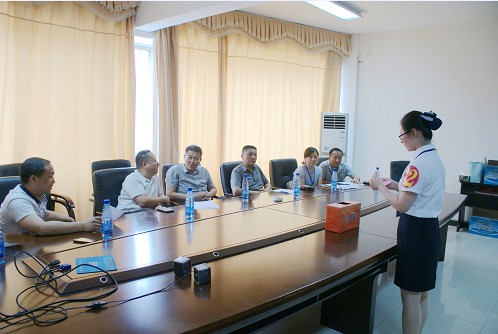 公司董事長兼總經(jīng)理彭瑞華(左三)親臨理論考試比賽現(xiàn)場