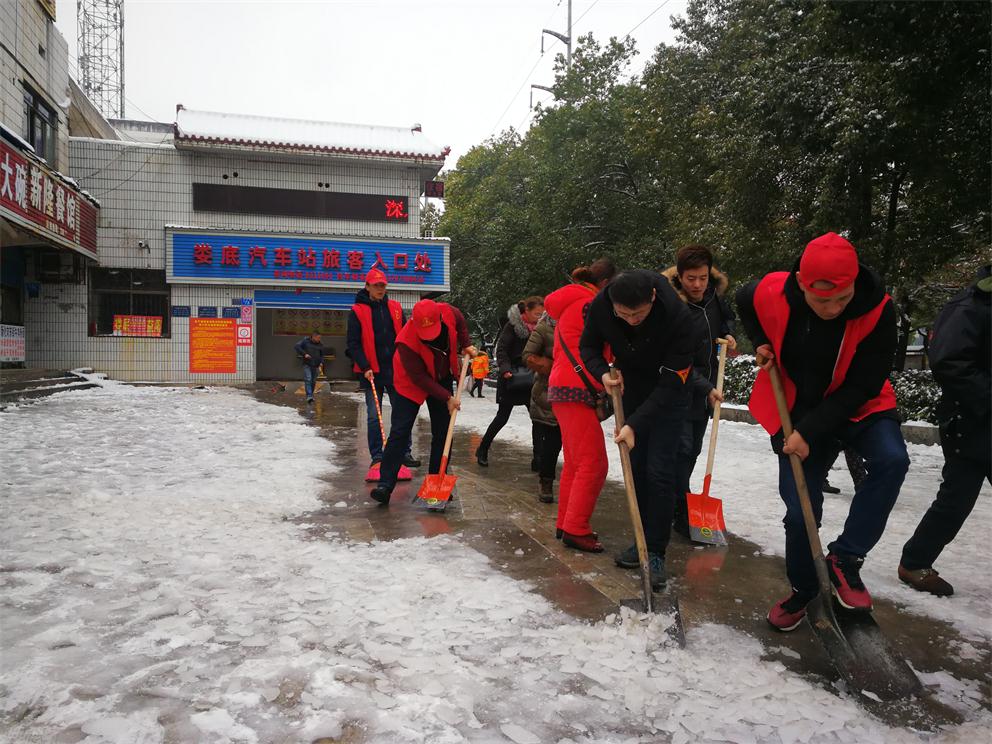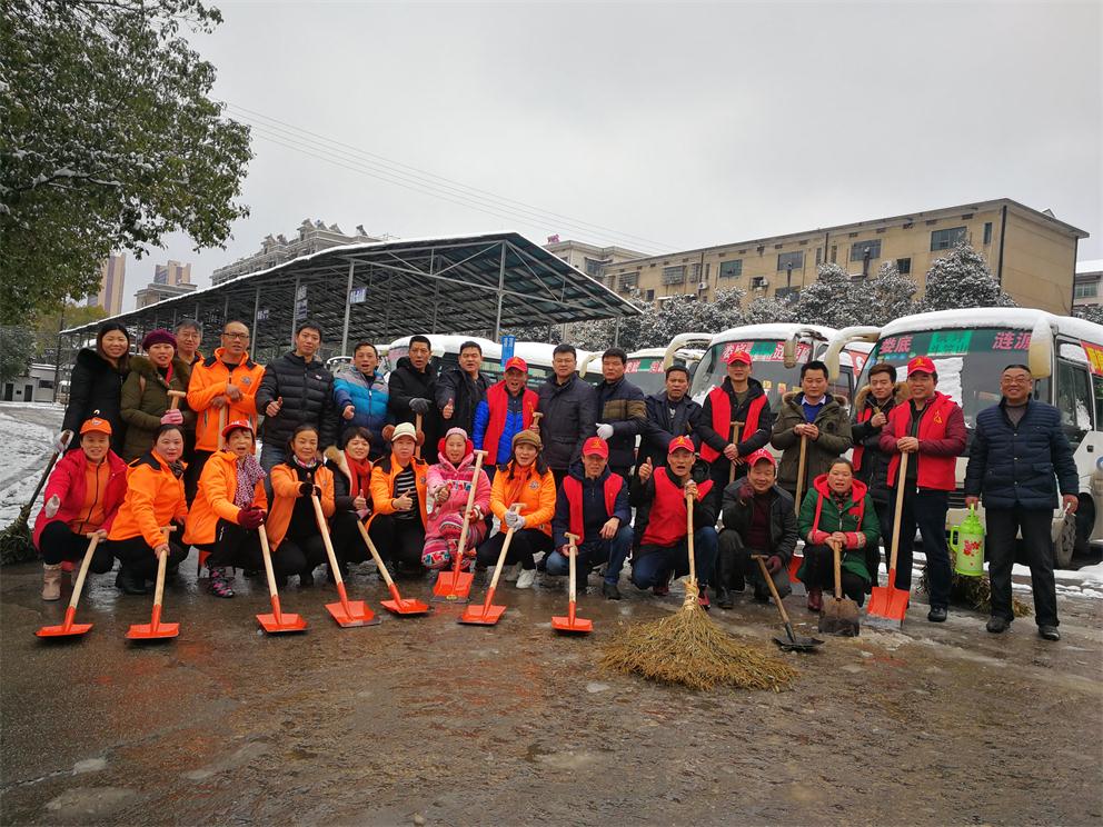 早上八點半,在車站生產副經理付育平帶領下,辦公室、調度、稽查大隊、營收監(jiān)控隊、服務班、安保等部門近20多名志愿者拿著鏟子、鐵鍬和竹掃把等工具,對車站旅客入口處通道、車輛進站通道、車站站坪、短途通道、車輛出站通道等地的堅冰進行鏟除,寒風凜冽,積雪厚重,冰塊堅硬,但我們的雷鋒志愿者們熱情高漲,大家發(fā)揚不怕若不怕累的精神,齊心協(xié)力,分工合作,揮鍬掄鎬,鉚足了勁,發(fā)起了挑戰(zhàn)嚴冰暴雪的攻堅戰(zhàn),在車站奏響了美妙的樂意,汗水濕透了背脊,手掌磨起了血泡,冰雪打濕了鞋襪,大家全然不顧,只看見一頂頂小紅帽在雪地上不停的運轉,很多駕駛員和班線承包人紛紛加入鏟雪隊伍,婁星微馬隊的20多名隊員們在他們隊長的帶領下也來到車站幫著一起鏟雪除冰,他們橙色的微馬隊服也是一道道靚麗的風景線。大家都有一個共同的名字——學雷鋒志愿者!他們的一言一行彰顯真情,贏得了過路市民的連聲稱贊!